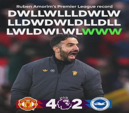 同时,这是曼联自2023年8月以来,首次取得英超主场四连胜。