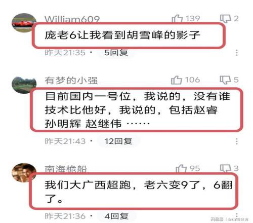 庞峥麟的炸裂表现,网友们更是好评如潮。“30万的年薪,干300万的活。”;“老六牛逼,这明明比江苏外援还要强的多。”;“这探花真可以啊,易立这是纯纯拿来当小外援用啊”;“庞老6让我看到胡雪峰的影子。”;“目前国内一号位,我说的,没有谁技术比他好,我说的,包括赵睿 孙明辉 赵继伟 ……”。