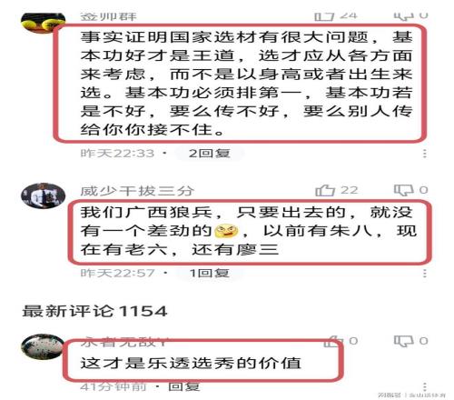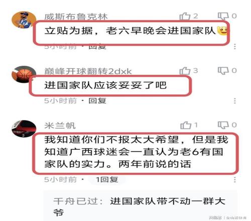 许多网友纷纷表示,庞峥麟应该进国家队。“立贴为据,老六早晚会进国家队”;“进国家队应该妥妥了吧”;“我知道你们不抱太大希望,但是我知道广西球迷会一直认为老6有国家队的实力。两年前说的话。”;“事实证明国家选材有很大问题,基本功好才是王道,选才应从各方面来考虑,而不是以身高或者出身来选。基本功必须排第一,基本功若是不好,要么传不好,要么别人传给你接不住。”;“我们广西狼兵,只要出去的,就没有一个差劲的,以前有朱八,现在有老六,还有廖三。”;“这才是乐透选秀的价值。”……