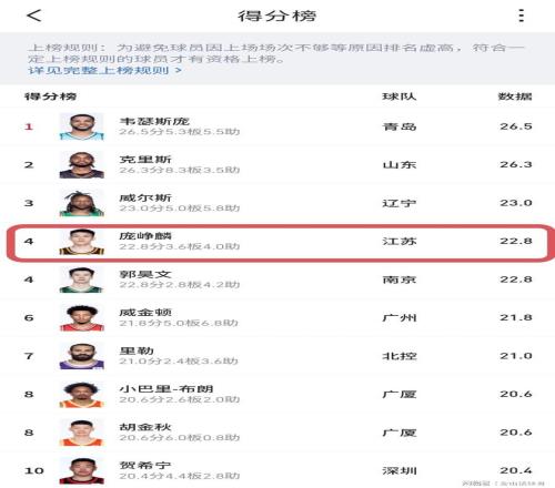 值得关注的是,本赛季截止前5轮,作为选秀大会探花签的庞峥麟,场均22.8分3.6篮板4助攻,投篮命中率59.4%、三分命中率50%。而场均22.8分,排在全联盟第4位。对于一名CBA一年级生来讲,这表现堪称逆天。