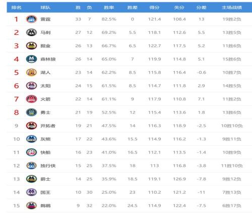 今日比赛后西部排名没有变化,只是球队间的胜场差有所变化,西部最新排名如下: